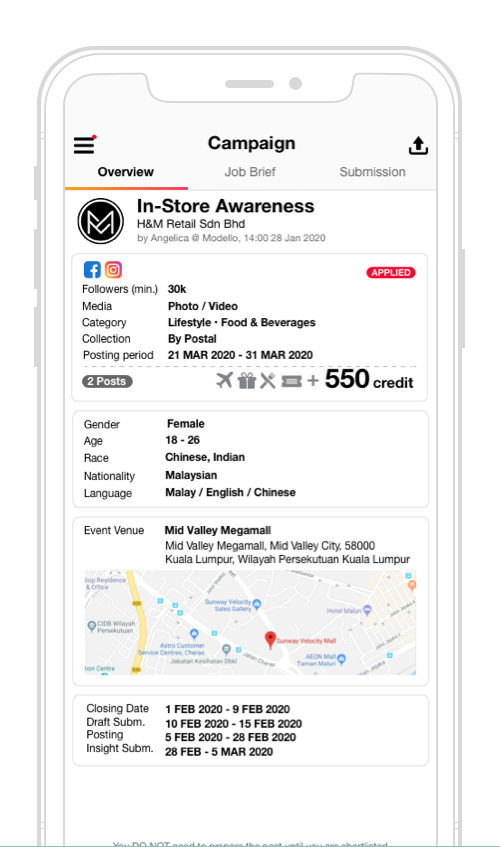Apply for any campaigns that you are interested in